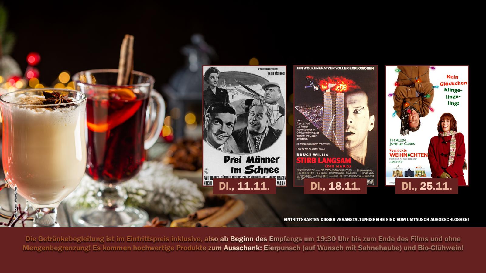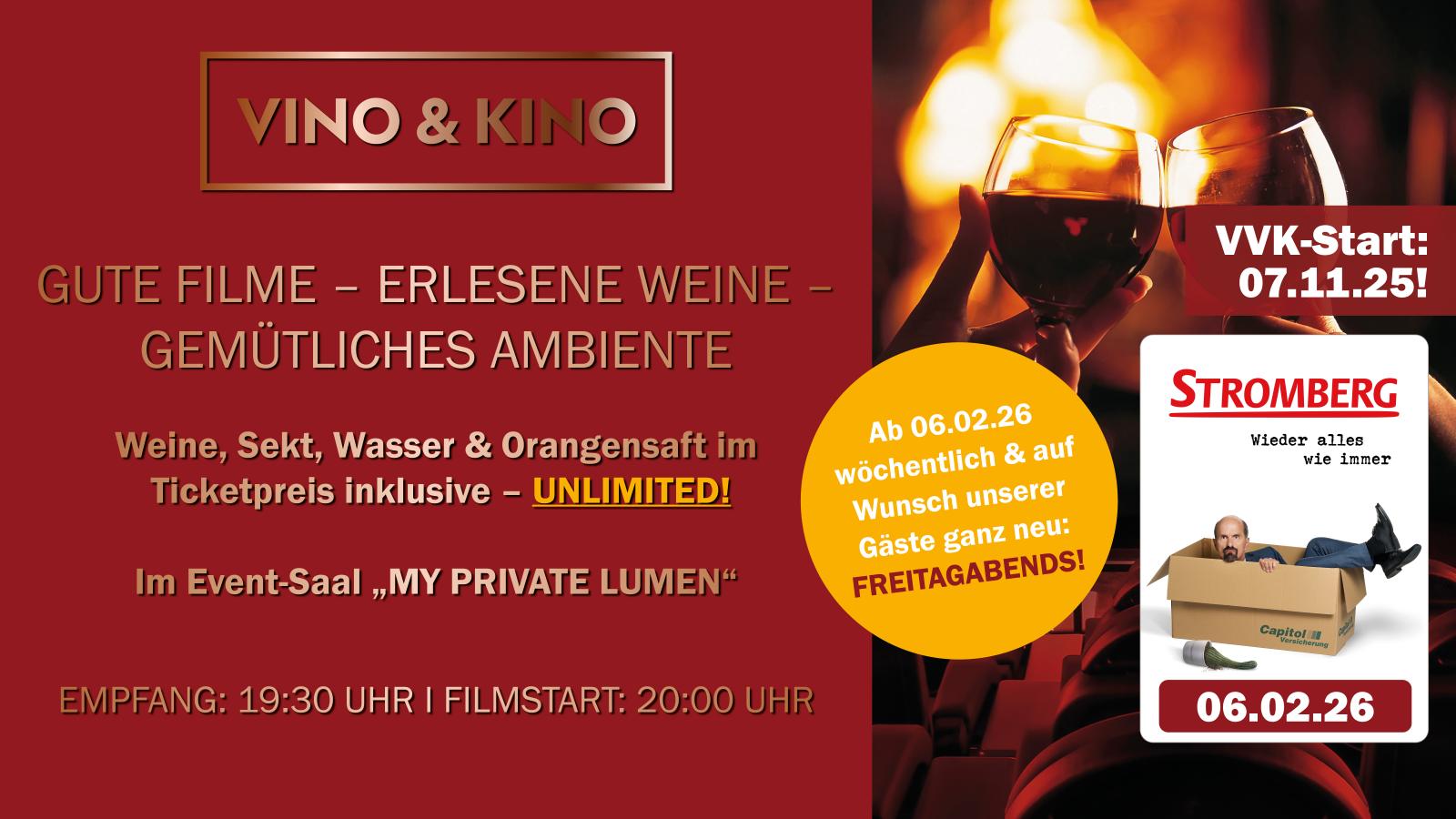 Bei unseren Vino & Kino Specials sind Wein, Sekt, Wasser und Saft während des Empfangs und der gesamten Vorstellung im Eintrittspreis inklusive!