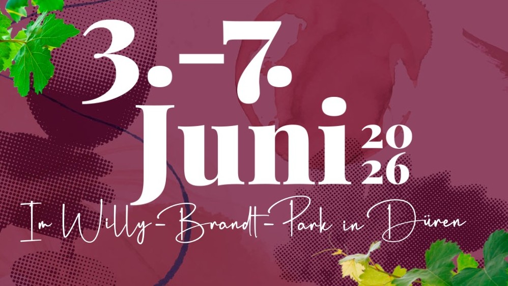 Vom 3. bis 7. Juni 2026 wird der Willy-Brandt-Park (Stadtpark) in Düren wieder zum Treffpunkt für alle, die Wein, gutes Essen und eine entspannte Atmosphäre lieben. Beim zweiten internationalen Weinfestival „Wein im Park“ erwartet Sie ein Erlebnis, das Genuss, Kultur, Kunst und Lebensfreude perfekt verbindet.